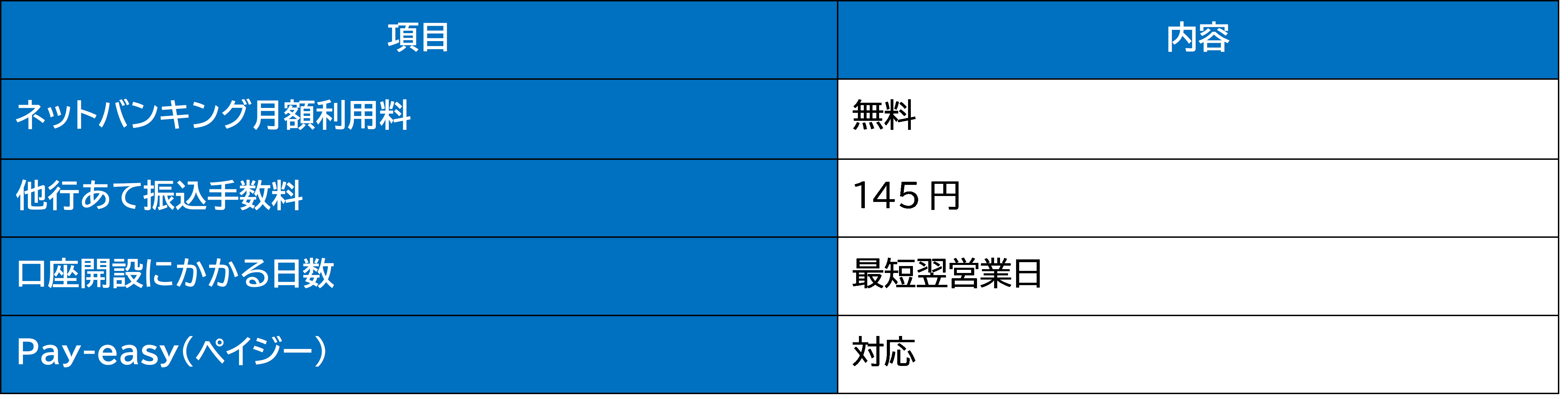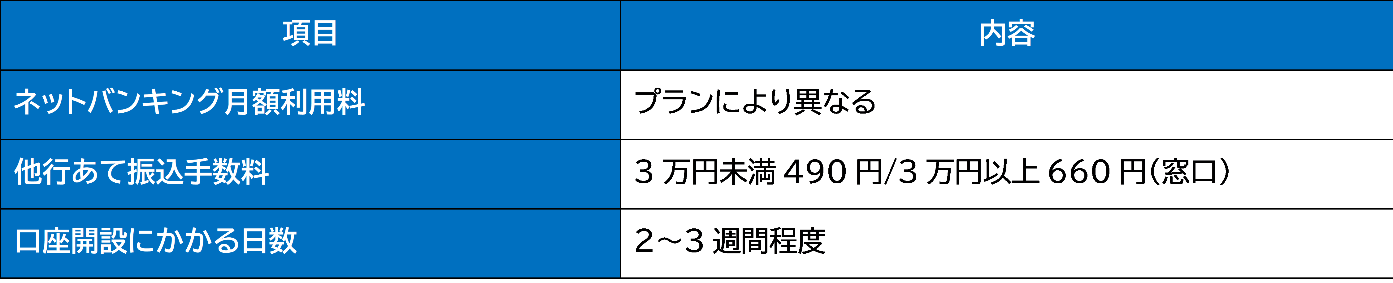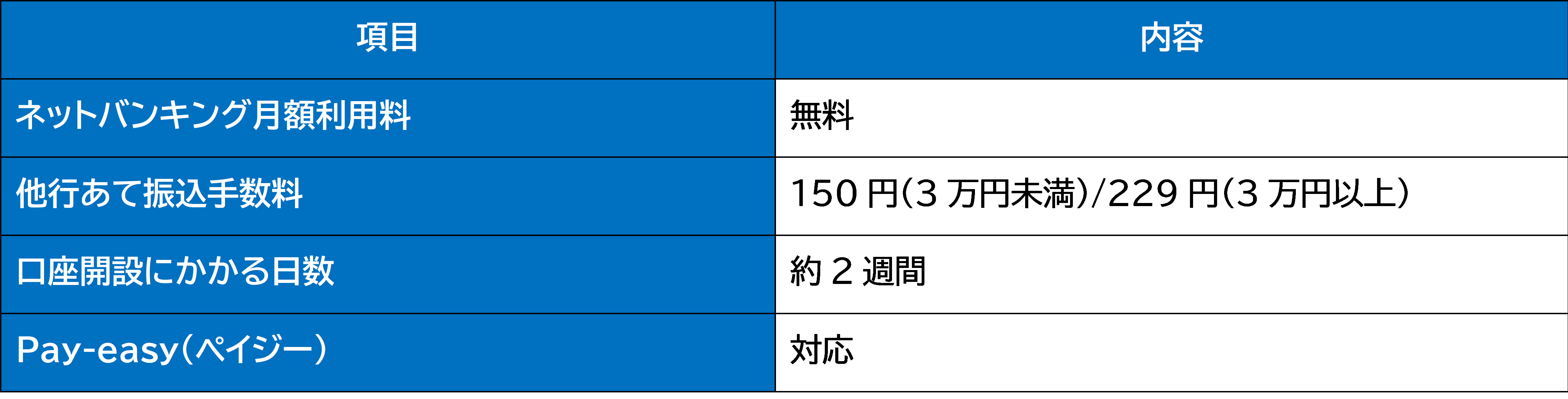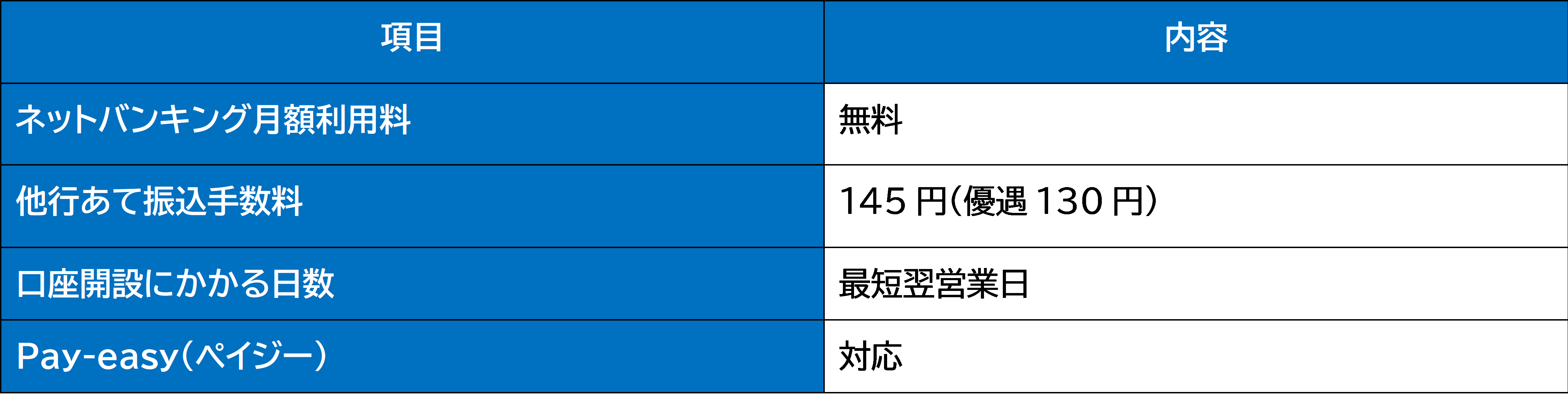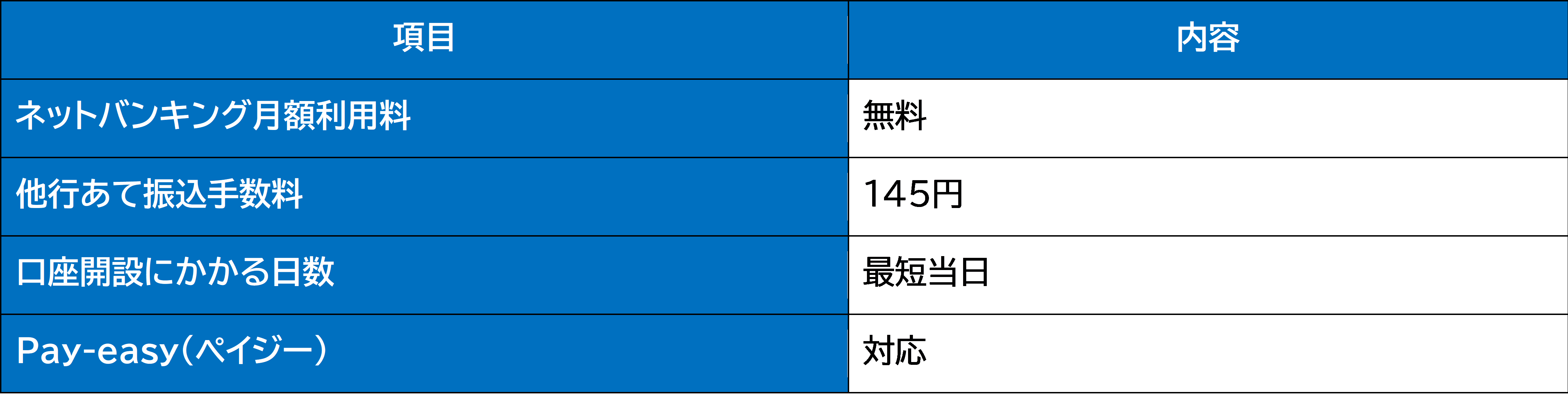 ● メリット: 必要書類が少なくスムーズ、ネットバンキング無料、振込手数料が低水準