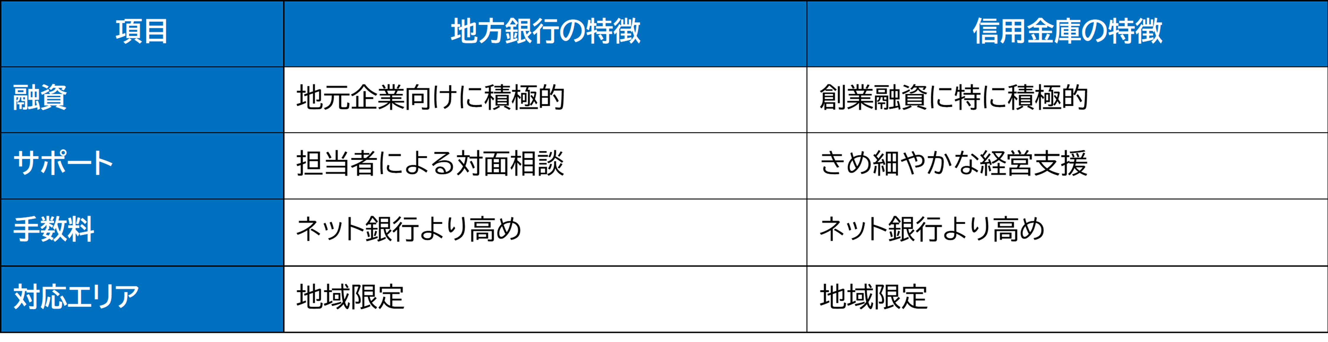 ● メリット: 対面での相談が可能、創業融資に積極的、地域情報に詳しい